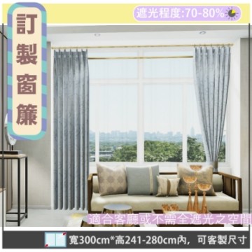 【宜欣居傢飾】星光閃亮-壓花素色遮光窗簾(米)W300*H241-280cm以內(可指定尺寸)*2片/遮光/摺景/落地/窗簾/台灣製MIT