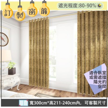 宜欣居傢飾-訂製窗簾-W300cm x H211-240cm以內-大馬士革-立體緹花遮光窗簾(米/卡其)