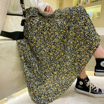 La Belleza鬆緊腰小新花朵印花壓折百摺裙大擺裙(有內襯)