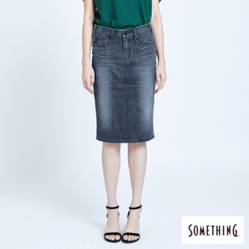 SOMETHING 女裝 NEO FIT及膝牛仔半身裙-麻灰色