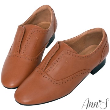 Ann’S莫名氣質-精緻雕花懶人拉帶平底牛津鞋-米白