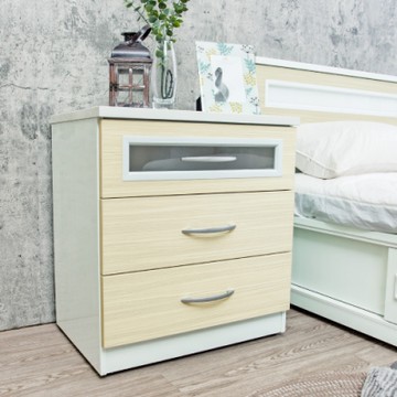 Paroma 艾里斯 實木塗裝強化玻璃方形床頭櫃 乳白色 1組