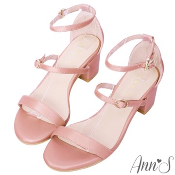 Ann’S優雅浪漫約會-三橫帶絲緞粗跟涼鞋-粉