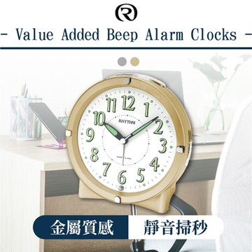 RHYTHM日本麗聲 金屬感設計漸進鬧鈴貪睡夜燈鬧鐘(香檳金)/11.8cm