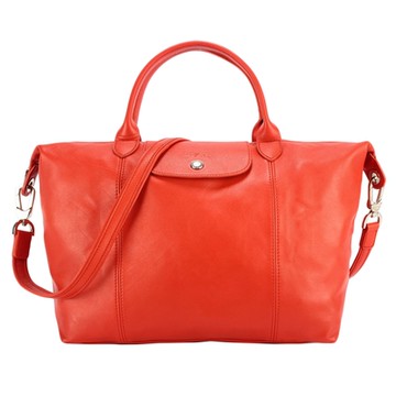 LONGCHAMP LE PLIAGE CUIR 小羊皮短把手提/斜背包(中-紫紅色)