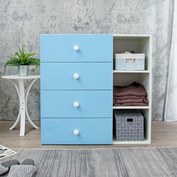 Birdie南亞塑鋼-防水3尺四抽三格組合式塑鋼斗櫃/四斗櫃/收納置物櫃(白色+粉藍色)-90x46.5x90cm