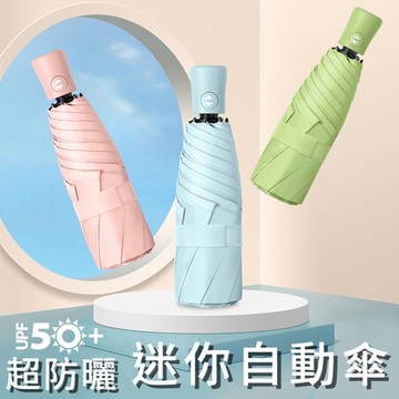 2022新款日系簡約ins彩膠防曬晴雨兩用傘便攜式自動傘三折自動傘