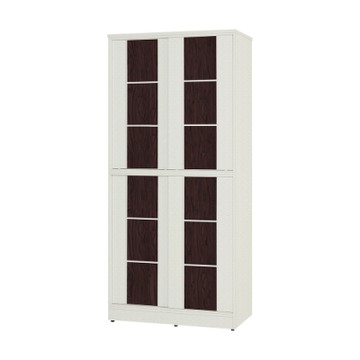 Birdie南亞塑鋼-3尺方塊直飾條四推/拉門防水塑鋼高鞋櫃(白色+胡桃色)-90x41x195cm