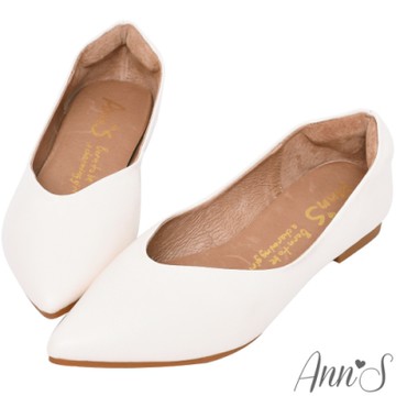 簡約編織線-軟後跟尖頭鞋-米白色