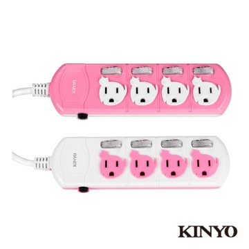 Kinyo 彩色安全延長線 274.3cm 白色+綠色 1入