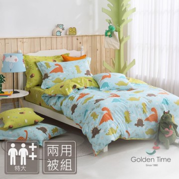 GOLDEN-TIME-恐龍草原-200織紗精梳棉兩用被床包組(特大)