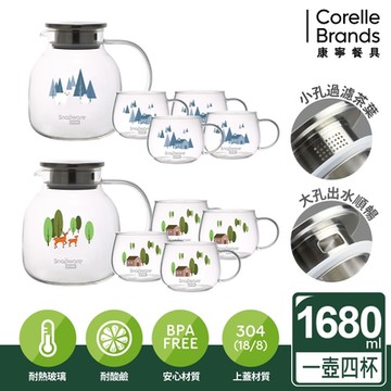 【Snapware 康寧】耐熱玻璃茶壺組 一壺四杯(附濾網)-兩款可選
