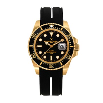 Valentino Coupeau 范倫鐵諾 古柏 陶瓷水鬼腕錶【金色/黑面/橡膠】