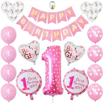 WIDE VIEW 粉色愛心週歲生日派對氣球套組(BL-10)