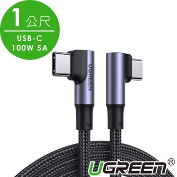 綠聯 100W 5A快充電線/傳輸線USB-C對USB-C金屬殼編織雙L版(1公尺)