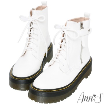 【35-43全尺碼】馬丁靴.經典皮革拼接繫帶拉鍊圓頭厚底短靴.白鳥麗子
