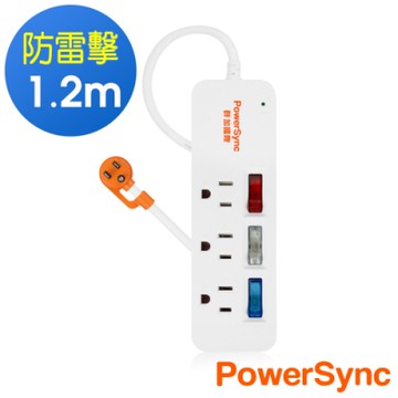 PowerSync 包爾星克 群加 1開5插防雷抗搖擺旋轉延長線 TR5W9018 1.8m 1條 白色