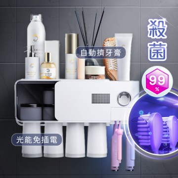 【慢慢家居】太陽能紫外線牙刷消毒置物架 (磁吸4口杯+自動擠牙膏器)