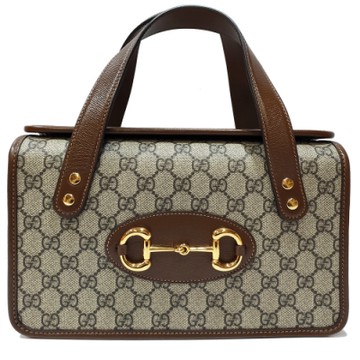 GUCCI 經典1955馬銜扣系列波士頓手提包(全新展示品-棕色)