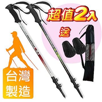 生活無限-健走杖/行走杖/經典款三節 6061鋁合金/直柄 (紅色 2入) N02-108《贈送背袋+方巾》
