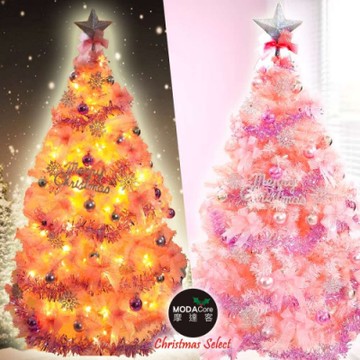 摩達客耶誕-台灣製6尺(180cm)豪華版夢幻粉紅聖誕樹(浪漫櫻花粉銀系配件)+100燈LED燈暖白光2串(附控制器)本島免運費