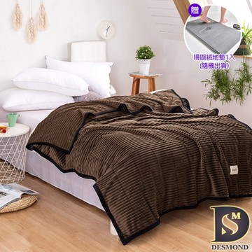 岱思夢 雪貂條紋法蘭絨毯 咖啡 毛毯 毯子 尾牙贈品 禮品 交換禮物 聖誕禮物 贈珊瑚絨地墊1入