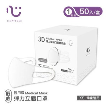 【匠心】幼幼3D立體醫療口罩-XS尺寸 - 藍色(50入/盒)
