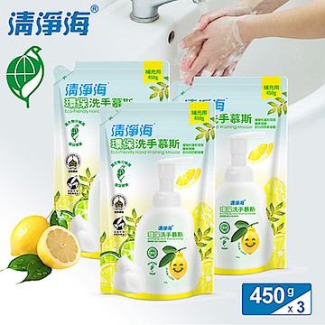 清淨海 環保洗手慕斯補充包(檸檬飄香) 450g-3入組