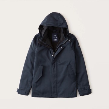 A&F 麋鹿 經典貼標鋪棉防風保暖防潑水連帽風衣外套(男)-黑色