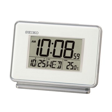 SEIKO 靜音鬧鐘 溫度/日期顯示 電子鍾(QHL068W)-白/9x12.7cm