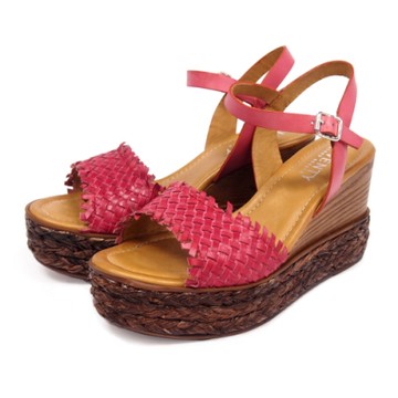 Tino Bellini 歐洲進口編織工藝繫踝厚底楔型涼鞋-桃紅