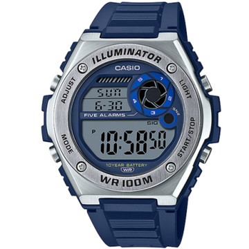 CASIO 10年電力系列金屬風質感休閒錶-藍(MWD-100H-2A)/50.7mm / 考試錶