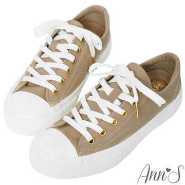 Ann’S黑科技-弄不髒防潑水綁帶金釦帆布鞋-米
