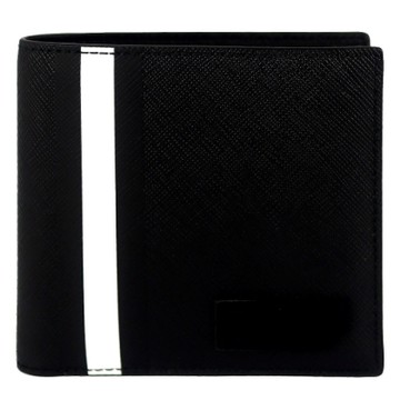 BALLY 黑色品牌皮標經典黑白條紋短夾(八卡)