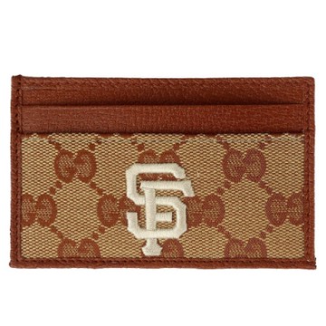 GUCCI 古馳 咖啡色大聯盟緹花帆布名片夾(5卡)