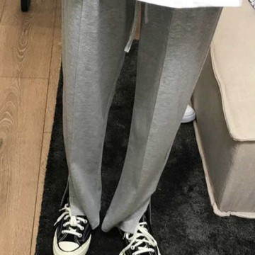 深灰色垂感糯米褲女大碼胖mm顯瘦褲子慵懶風寬松休閑闊腿運動衛褲