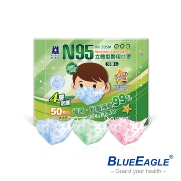 藍鷹牌 N95立體型6-10歲兒童醫用口罩 50片x1盒