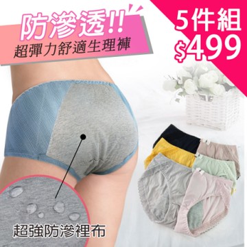 內褲(5件組) 生理褲 防滲漏 安全 生理期 超彈力 經期 防側漏 蕾絲 無痕 褲邊 沁甜美姬