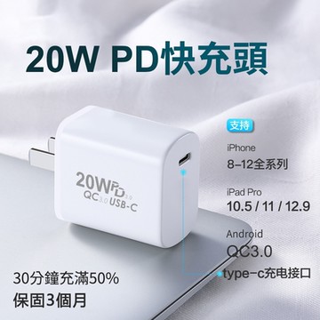 20W PD快充頭 支援QC3.0 充電頭 蘋果充電 iPhone iPhone IPAD 三星 OPPO HTC 適用