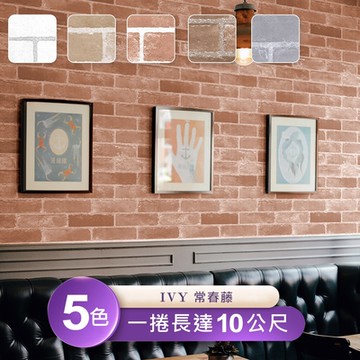 【IVY常春藤】台製環保無毒防燃耐熱53X1000cm高仿磚紋壁紙/壁貼3捲