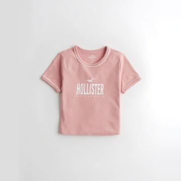 Hollister 海鷗 經典印刷文字圖案短袖T恤(女)-粉色