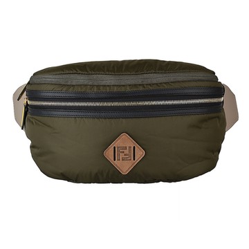 FENDI 經典FF LOGO皮革壓印尼龍後背兩用包(綠)