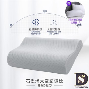 岱思夢 石墨烯太空記憶枕_1入 台灣製 人體工學設計 高密度記憶棉 慢回彈 枕頭 枕芯 多款任選 贈3M防潑水抗菌枕套1入