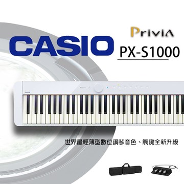 『CASIO卡西歐』PX-S1000 88鍵數位鋼琴 / 白色款攜行組 / 琴+袋+三踏 / 公司貨保固