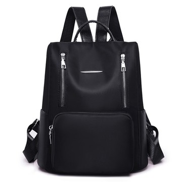 配皮雙拉鍊防潑水牛津布大容量後揹包/雙肩包 0033 33 x 31 x 13cm 黑色