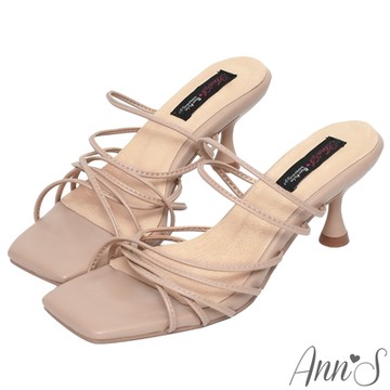 Ann’S魔法美腿術-顯瘦Z型弧度方頭粗跟涼拖鞋-可可