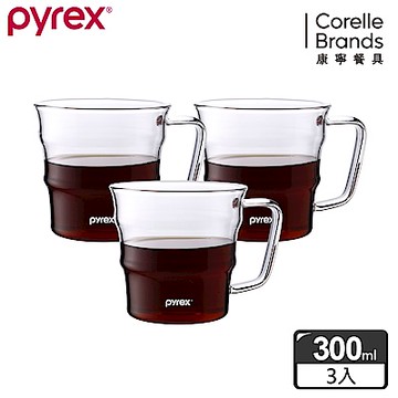 【美國康寧】(3入組)Pyrex Cafe咖啡玻璃杯 300ML