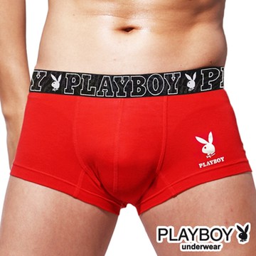 男內褲 PLAYBOY 棉質兔頭空心字母印花彈性四角褲-單件(紅)