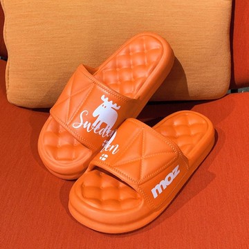 moz瑞典 駝鹿 厚片鬆餅拖鞋-葡萄柚橘