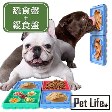 Pet Life 四格慢食盤/舔食墊 防噎食/犬貓皆適用 紅藍配色